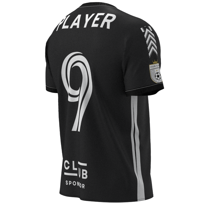 This distinctive xclucv-2017 brings a bold, multi-shade black aesthetic to the pitch. Featuring a deep black base accented by bright black details, this versatile kit can be seamlessly customised to suit the needs of grassroots Sunday League teams, ambitious semi-professional clubs, and competitive football academies. With a low minimum order quantity and no hidden costs, Epic Kits’ tailored designs empower teams of all levels to elevate their look and performance on the field.