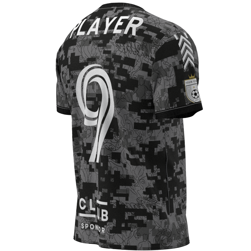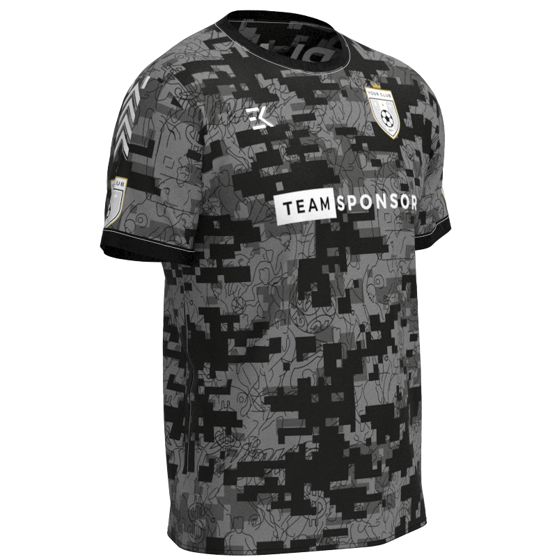 Step onto the field with confidence in this xctxcv-2020-21 displaying a sophisticated multi-shade gray kit. Deep charcoal and bright silver panels create a striking visual, perfect for players at every level, from grassroots Sunday League to ambitious semi-professional clubs. Customise this design to your team’s exact specifications, with no hidden costs – everything is included, from socks and shorts to personalised badges and sponsors. Elevate your performance with this exceptional kit, tailored to your club’s unique style and needs.