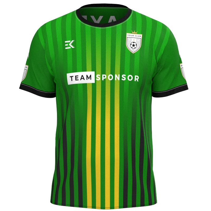 Transform your team’s look with this xgjcv-2021-22 in a striking combination of rich, deep greens and vibrant yellow tones. Designed for players at all levels, from grassroots Sunday League to semi-professional clubs, this fully customisable kit allows you to showcase your team’s identity. With no hidden costs and a low minimum order of just 5 kits, Epic Kits makes it easy to elevate your squad’s on-pitch style. Speak to our expert designers today to create a truly unique look that will have your team standing out on the pitch.