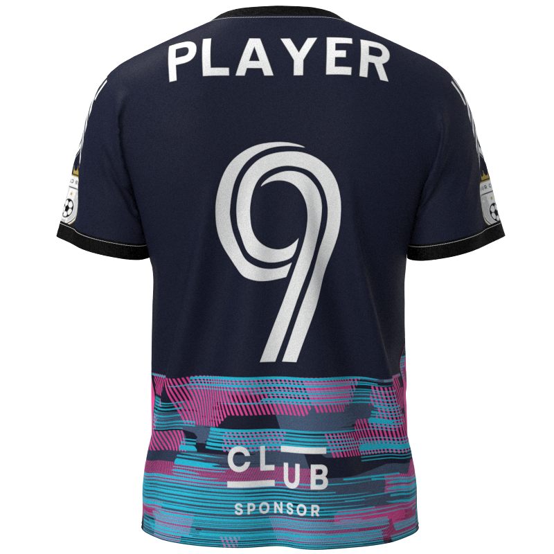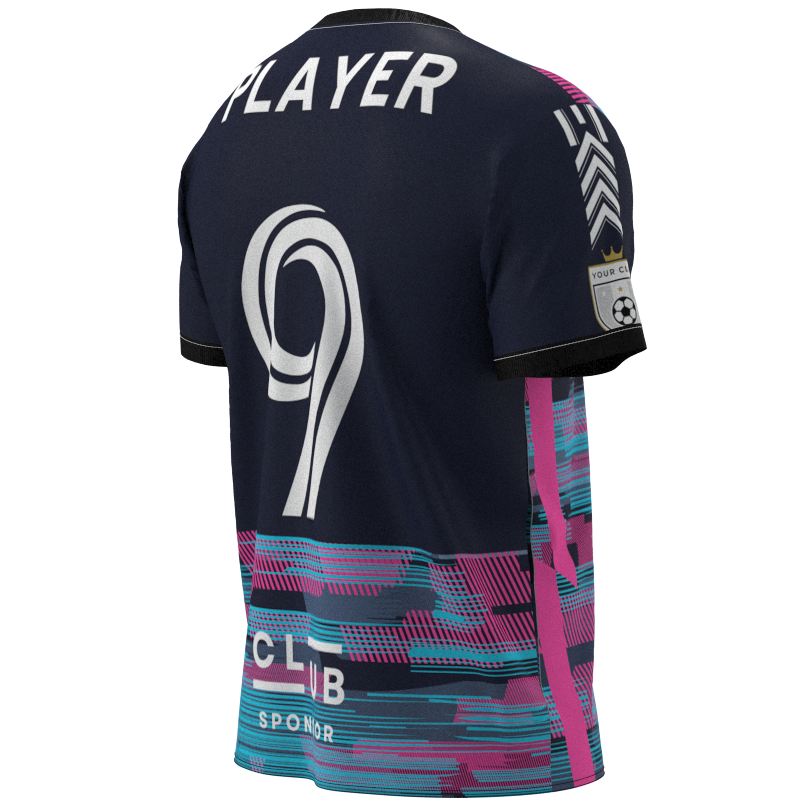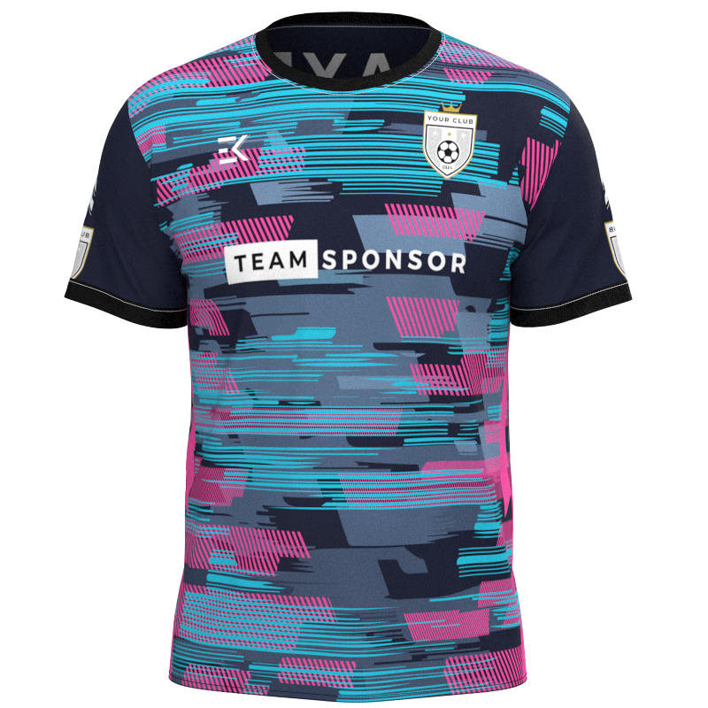 Stand out on the pitch with this xrltecv-2021-22 featuring a rich and vibrant colour palette. The primary deep blue hue blends seamlessly with accents of soft, pastel-tinged purple and delicate, blushing pink shades, creating a truly eye-catching design. Perfect for Sunday League, semi-professional, and competitive football teams, this fully customisable kit is built to perform, with no hidden costs and everything included. Speak to our design experts today to create your dream kit and showcase your club’s style and ambition on the field.